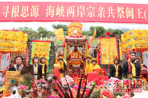上午10時許,兩岸宗親共祭閩王大典在鐘鼓齊鳴聲中正式開始。2列古裝儀仗隊沿著石階緩緩而上,臺灣王氏宗親代表王珠慶作為主祭人,手持香火,率領身著漢裝的海峽兩岸王氏宗親,在閩王金身前開始隆重的各項祭祀程序:盥洗上香、獻三牲五谷、行初獻禮、讀祝文……