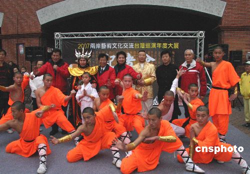 應(yīng)臺(tái)北縣鄧公小學(xué)的邀請(qǐng),著名“變臉”表演藝術(shù)家韋瑞群和河南“少林功夫明星團(tuán)”于2007年1月首次到臺(tái)灣演出。 路梅 攝