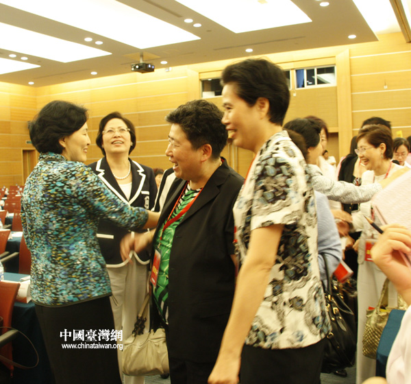 兩岸婦女代表見面后熱情相擁,把手言歡。(中國臺灣網(wǎng) 李桂英 攝)
