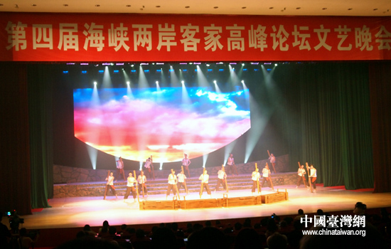 第四屆海峽兩岸客家高峰論壇今晚舉辦文藝晚會,演繹客家風情。(中國臺灣網 張弛 攝)