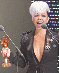 報道稱,本屆金曲被認(rèn)為是“女人天下”,張惠妹以實(shí)驗(yàn)性強(qiáng)烈、挑戰(zhàn)情歌群眾基礎(chǔ)的“阿密特”入圍十項最強(qiáng),果然奪最佳專輯獎、最佳專輯制作人獎(阿弟仔),《好膽你就來》得年度歌曲獎及最佳編曲人(Martin Teng),《開門見山》得最佳作詞人獎(林夕);阿妹(張惠妹)本人繼第13屆封后之后,八年后再度戴上歌后桂冠,以少數(shù)民族本名“阿密特”揚(yáng)威。