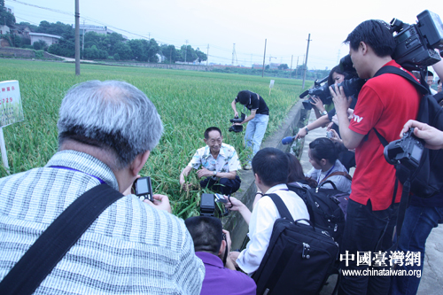 采訪第一站,湖南雜交水稻研究中心,當(dāng)傳說中的袁隆平院士出現(xiàn)時,兩岸記者瞬間變身老先生的瘋狂粉絲,從研究所一路追到實驗田,“喋喋不休”的提出各式問題,從如何看待轉(zhuǎn)基因食品到是否吃過臺灣大米,兩岸媒體都想聽聽老先生怎么說。采訪結(jié)束后,八十歲的老院士還不能抽身,在實驗田邊經(jīng)歷了臺灣記者的熱情圍堵與瘋狂拍照。