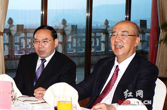 晚宴開始前,雙方還進(jìn)行了簡(jiǎn)短會(huì)談,賓主雙方認(rèn)為湘臺(tái)兩地的經(jīng)貿(mào)文化合作,一定能達(dá)到“一加一大于三”的效果。