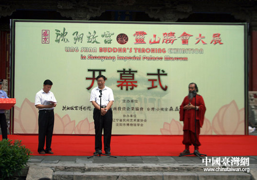 中國(guó)臺(tái)灣網(wǎng)8月6日沈陽(yáng)消息 日前,遼寧省沈陽(yáng)故宮博物院和臺(tái)灣森磊觀博物館合作的“靈山勝會(huì)大展”在沈陽(yáng)故宮開幕。此次臺(tái)灣森磊觀博物館共有97件佛教展品展出。開幕式上,沈陽(yáng)故宮博物院院長(zhǎng)武斌、森磊觀博物館館主陳學(xué)明先后致辭,沈陽(yáng)市副市長(zhǎng)王玲宣布會(huì)展開始。