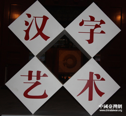 太廟前的首屆“兩岸漢字藝術節”文字LOGO。(中國臺灣網 高斯斯 攝)