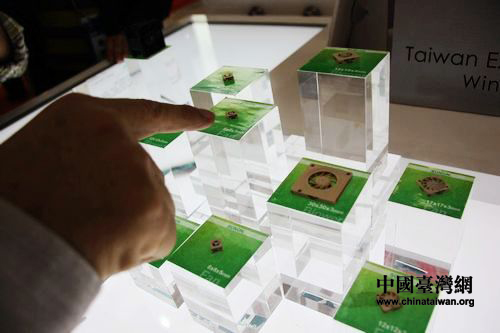 西博會的“臺灣精品館”展出了全球最小巧的風扇,厚度僅3毫米,可大大縮小電子產品體積。(中國臺灣網 馬迪 攝)