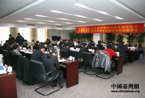 天津市高級人民法院院長李少平對受聘擔任涉臺案件特邀調解員的9名臺胞表示感謝。他表示,聘任臺胞擔任人民法院涉臺案件特邀調解員,是推進兩地經(jīng)貿交流與合作而推出的新舉措。有利于發(fā)揮臺胞專業(yè)和屬地優(yōu)勢、化解社會矛盾、公正廉潔執(zhí)法“三項重點工作”,提高涉臺案件的審判質量,從而更好地保護臺胞、臺企的合法權益。