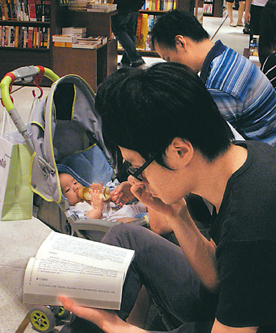 圖為“奶爸”帶著寶寶在書店。徐蕾 攝