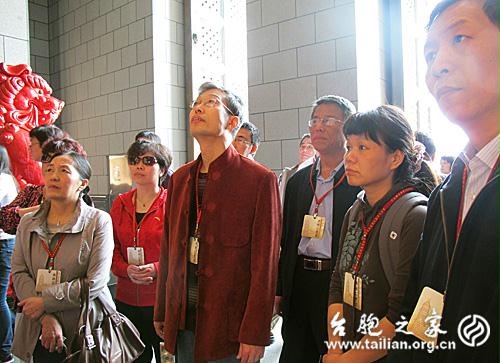 礙于篇幅筆者不想一一描述參觀的細節,只記錄兩點作家的共同感受:感受一,原來寺廟還可以是這樣的!此話怎講?中臺禪寺帶給作家的絕不僅僅是宏偉壯觀產生的震撼,也不僅僅是工匠鬼斧神工的機巧,最重要的還是它傳統宗教與現代社會的有機融合。社會在發展,世界在進步,傳統古老的宗教如何跟上時代的腳步,中臺禪寺提供了一個成功的范例;感受二,接受了一次絕對是貴賓級的待遇。由于夏潮和王導預先作了聯系,寺方特意派出一位女師傅為大陸作家講解。憑著一張通行證,我們看到了一般游客看不到得光明殿、萬佛殿、藏經閣,聆聽了細致的解說。若不是第五層有法事活動,我們幾乎看遍了所有的殿堂。憑這兩點共同的感受,大家回到車上,向夏潮和王導報以熱烈的掌聲就在情理之中了。