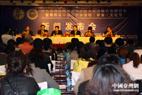 第九屆海峽兩岸中華傳統(tǒng)文化與現(xiàn)代化研討會暨第四屆中國·介休清明(寒食)文化節(jié)新聞發(fā)布會。(中國臺灣網(wǎng) 董潔 攝)
