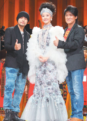 宋祖英(中)出席演唱會記者會,周杰倫(左)、周華健前來祝賀。圖片來源:臺灣《聯合報》