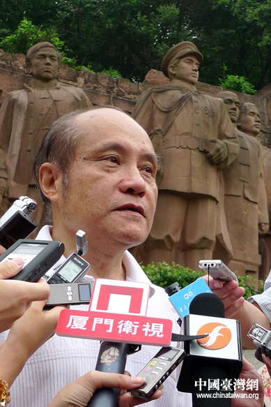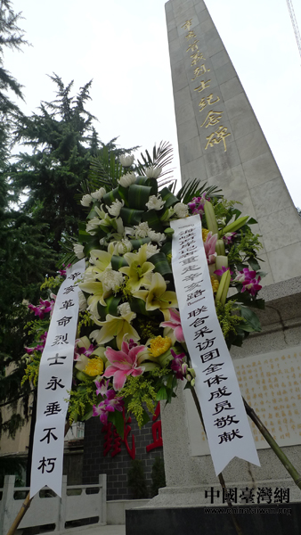 兩岸記者聯(lián)合采訪團(tuán)在辛亥革命烈士公墓向烈士敬獻(xiàn)花圈(中國臺(tái)灣網(wǎng) 李徽 攝)