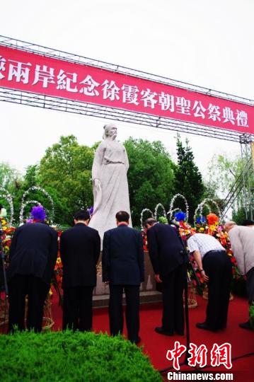 19日“中國(guó)旅游日”當(dāng)天,海峽兩岸紀(jì)念徐霞客朝圣公祭典禮在“游圣”故里江陰舉行,兩岸徐霞客研究會(huì)代表及游人在此緬懷先祖。 李一芳 攝