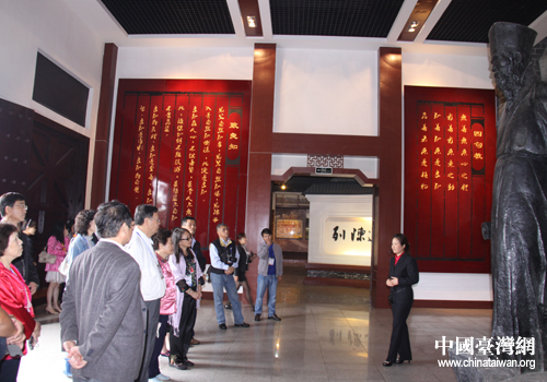 中國臺灣網5月25日貴陽消息 日前,臺灣青年菁英考察團一行來到貴陽市修文縣陽明主題文化公園參觀,臺灣嘉賓以自己的方式表達對先賢的敬仰。