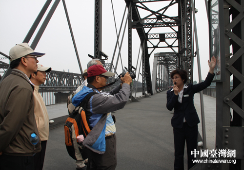 中國臺灣網(wǎng)6月8日丹東消息 日前,來遼寧丹東采訪的臺灣媒體參訪團(tuán)來到鴨綠江斷橋風(fēng)景區(qū)采風(fēng)。參訪團(tuán)一行先后參觀了鴨綠江斷橋多處歷史遺跡,聽取導(dǎo)游員講解了鴨綠江斷橋史話,并近距離欣賞了中朝兩岸風(fēng)光。鴨綠江斷橋給臺灣新聞媒體團(tuán)留下了深刻印象。(中國臺灣網(wǎng)丹東市臺辦通訊員 王冰 孫國輝)