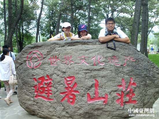 中國臺灣網7月5日承德消息 “龍脈相傳·青春中華全國臺聯2012年臺胞青年千人夏令營”活動團組今日來到了著名的旅游勝地——河北承德。來自臺灣和海外的200多名臺胞青年和30多名北京航空航天大學的志愿者一起參觀了承德避暑山莊以及有“小布達拉宮’之稱的普陀宗乘之廟。在這里,兩岸青年學子共賞美麗的皇家園林風景以及藏傳佛教的宏偉建筑,共同感受兩岸一脈相承的文化傳統和歷史淵源。他們一路歡歌笑語,通過交流,加深了彼此的感情,也使得臺胞青年對大陸的發展有了更加深刻的體會。