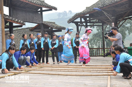 踏著節(jié)拍跳起竹桿舞。(貴陽市臺辦 胡珊珊 攝)