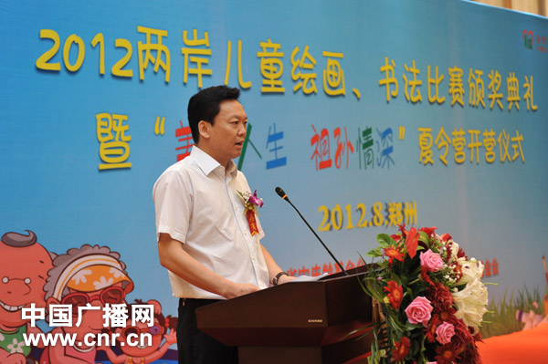 8月8日,由河南省宋慶齡基金會、臺灣黃烈火公益團體——財團法人純青社會福利基金會共同主辦的“2012兩岸兒童書法繪畫比賽”頒獎典禮暨“2012兩岸兒童‘美好人生 祖孫情深’夏令營”活動,在河南省宋慶齡基金會青少年兒童活動中心舉行開營儀式。作為中共河南省委統戰部2012年十件實事的重要內容之一,本次活動得到了中共河南省委統戰部和河南省臺辦的大力支持和指導。兩岸兒童繪畫、書法比賽自2004年開始舉辦,9年來已成功舉辦多次。