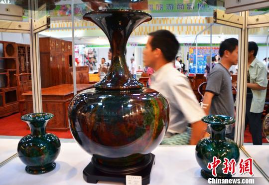 由新疆旅游局和克拉瑪依市人民政府主辦的首屆旅游商品博覽會10日在此間拉開序幕,將持續到15日結束,來自新疆15個地州市以及山東、上海、福建、廣東等十余個省市的400余家展商參加。主辦方稱,是次博覽會是迄今為止疆內參展商最多、規模最大、特色最突出的旅游商品會。來自臺灣、主營七彩玉的沛納金珠寶有限公司也帶來七彩玉瓶等器皿參展。