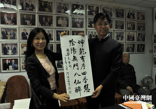 中國臺灣網(wǎng)2月26日高雄消息 日前,應(yīng)中華海峽兩岸企業(yè)交流協(xié)會的邀請,由北京市臺辦公室副巡視員杜德平率領(lǐng)的“北京特色周”參展團(tuán),在高雄舉辦了“京臺兩岸書畫家交流筆會”。程茂全、譚軍立、王靜和康景文、蕭季慧、楊濤、洪塔美等京臺書畫名家參加了交流筆會。