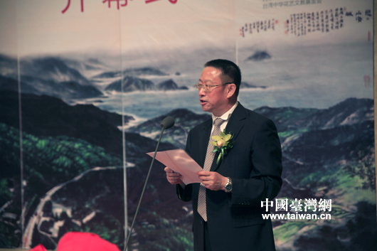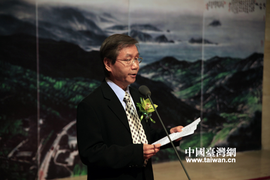 臺灣著名畫家黃永川書畫展9月24日在北京中國美術館開幕,周鐵農在開幕式上致辭(中國臺灣網 蕪同 攝)