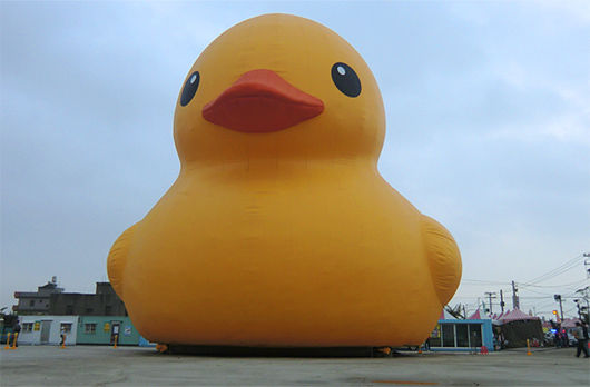 2013桃園縣地景廣場藝術節10月26日至11月10日在桃園縣新屋鄉展出,雖然桃園縣府表示,將會努力進行修復,希望讓小鴨“有機會”重現陂塘里,但是工作人員私下也表示,小鴨損壞狀況嚴重,至少要有5到7天修復。