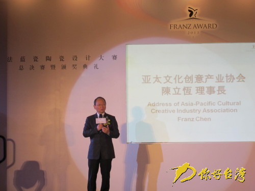 你好臺(tái)灣網(wǎng)北京11月19日消息 (記者 蘇伯皓) 由中國(guó)藝術(shù)研究院、臺(tái)灣創(chuàng)意設(shè)計(jì)中心與亞太文化創(chuàng)意產(chǎn)業(yè)協(xié)會(huì)共同主辦,中國(guó)藝術(shù)研究院陶藝研究中心、法藍(lán)瓷共同承辦的2013法藍(lán)瓷陶瓷設(shè)計(jì)大賽于11月18日在北京舉行總決賽暨頒獎(jiǎng)典禮記者會(huì)。[責(zé)任編輯:朱媛媛]