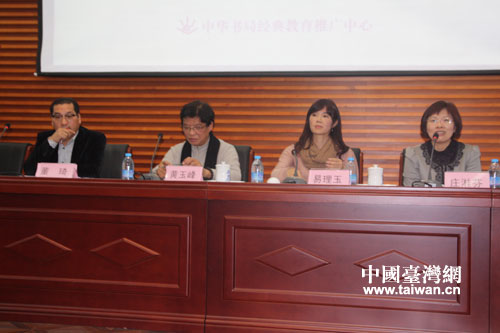 中國臺灣網12月14日消息 為響應十八大“建設優秀傳統文化傳承體系,弘揚中華優秀傳統文化”的號召,也為了進一步促進兩岸教授中華文化課程一線教師間的交流與學習,探索中華傳統文化教育的課程模式,中華書局經典教育推廣中心特聯合各基地學校,于12月14日在京舉辦首屆兩岸高中教師中華傳統文化特色活動課觀摩研討會,來自兩岸名校的骨干教師也分享了他們對于“國學”的認識。