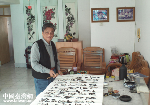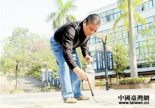 中國臺灣網12月16日南寧消息 聽臺聯的同志說,家住的南寧榮和山水美地的臺胞羅承鵬是位很有造詣的水墨書法愛家,常在小區空地、廣場清晨、傍晚用“地上書法”,引導青少年來傳承中華文化,受到各界的好評。