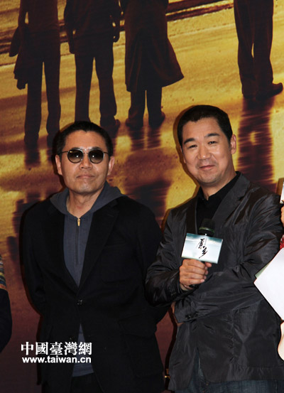 由張國立、陳寶國等兩岸明星出演的年度情感大戲《原鄉》6日在京舉行開播發布會,圖為主演張國立與陳寶國(中國臺灣網 李徽 攝)