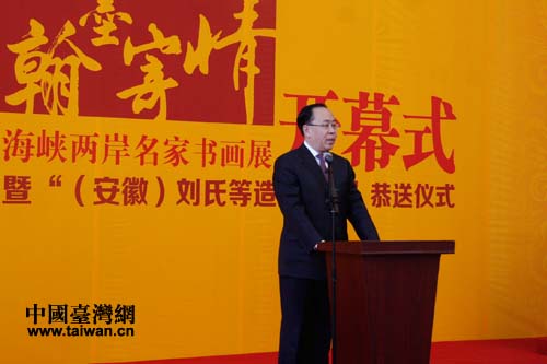 中國(guó)臺(tái)灣網(wǎng)3月21日天津消息 3月21日上午,“佛首返鄉(xiāng) 翰墨寄情”海峽兩岸名家書(shū)畫(huà)展暨“劉氏等造石佛塔”恭送儀式在天津美術(shù)館隆重舉行。本次活動(dòng)由天津市臺(tái)辦、天津市武清區(qū)人民政府共同主辦。海協(xié)會(huì)常務(wù)副會(huì)長(zhǎng)鄭中立、臺(tái)灣中山學(xué)術(shù)文化基金會(huì)董事長(zhǎng)許水德及有關(guān)省市領(lǐng)導(dǎo)出席活動(dòng)。