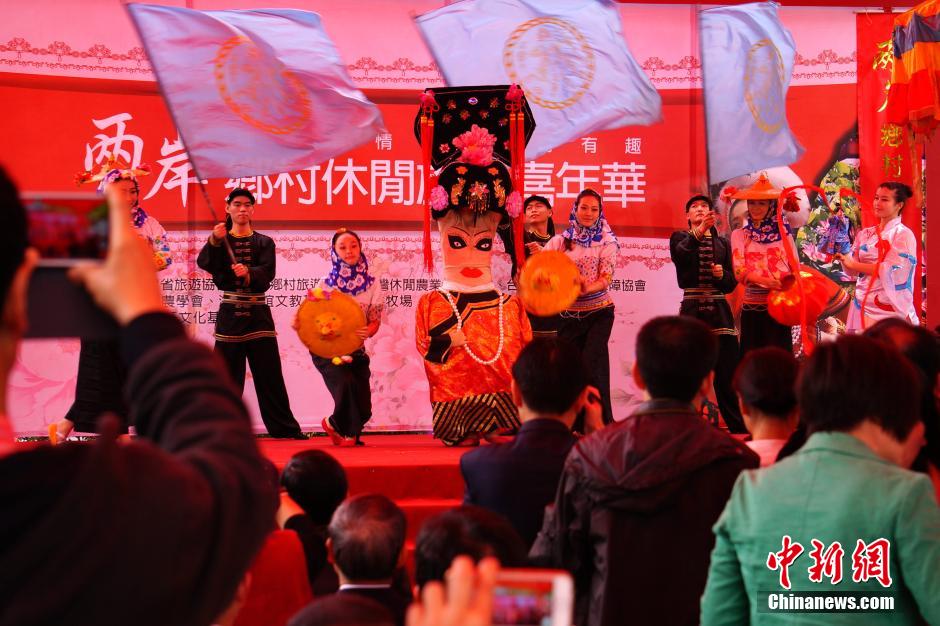 4月1日,一場名為“兩岸鄉村休閑旅游嘉年華”的活動在臺灣苗栗飛牛牧場上演,吸引了兩岸鄉村旅游業者、旅游商品企業及兩岸游客等1000多人參與。福建的惠女風情、大鼓涼傘、提線木偶、歌仔與臺灣布袋戲、電音三太子等富有兩岸特色風情的鄉村民俗表演逐一登場,現場叫好聲不斷。(中新社發 李志全 攝)