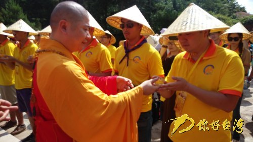 則悟大和尚親手將象征和平與希望的盞盞明燈傳遞給臺灣青年(你好臺灣網 圖)
