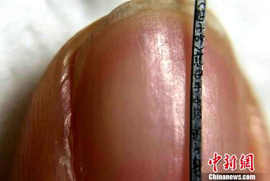 臺(tái)灣雕刻家陳逢顯近日在0.5毫米寬的鉛筆芯上雕刻唐詩《游子吟》,以感念母親循循善誘,使其步上藝術(shù)之路。 陳小愿 攝