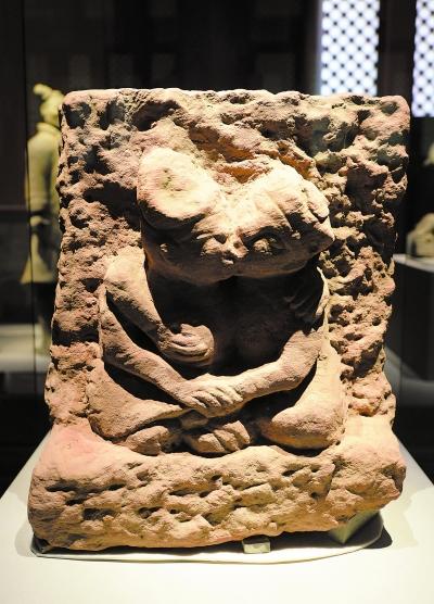 慈寧宮雕塑館展廳里的東漢男女相擁石像。本報(bào)記者 李繼輝攝