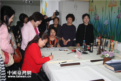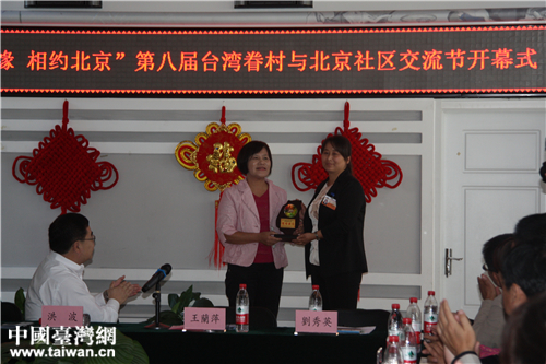 臺灣高雄市新加昌社區與北京通州新通國際社區互贈禮物。(中國臺灣網 段雯婷攝)