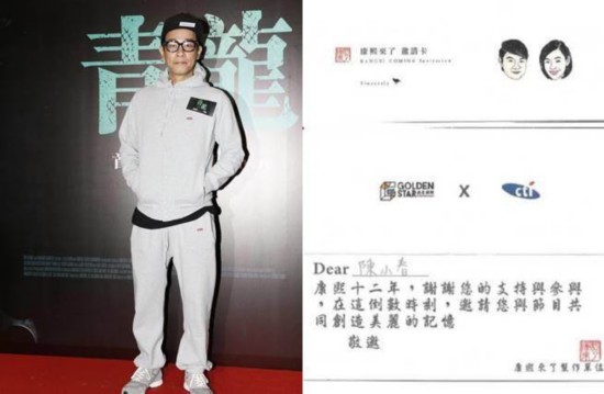 人民網11月12日電 據臺灣“中時電子報”報道,播出12年的節目《康熙來了》,即將在11月底錄制最后一集,先前傳出節目打算邀請百位嘉賓同樂,其中從沒上過《康熙》的范冰冰更令人好奇是否名列其中。但陳小春搶先自曝,他昨(11日)在微博曬出《康熙》邀請卡,證明自己將會是嘉賓之一。