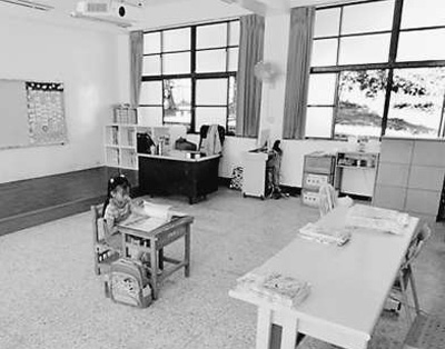 2014年9月,臺灣花蓮卓楓小學唯一的小一新生古蕊籃在教室中。