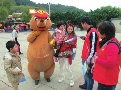 海滄志愿者宣傳“我是小袋鼠垃圾不落地”理念。鄭偉明 攝
