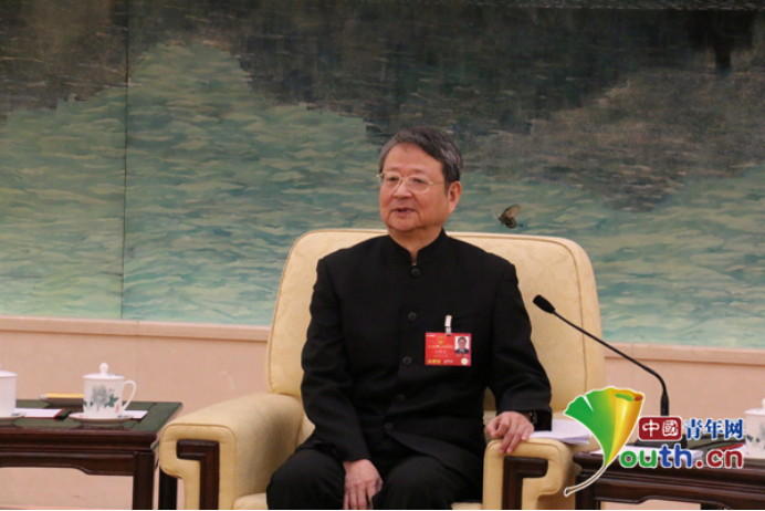 臺灣代表團(tuán)團(tuán)長汪毅夫回答中國青年網(wǎng)提問。中國青年網(wǎng)記者郭蕾 攝