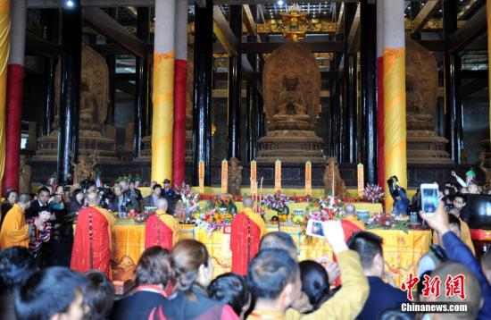中新社成都4月12日電 (記者 胡敏)12日,四川石象寺舉行儀式恭迎臺灣慈法禪寺釋迦牟尼佛佛骨真身舍利,迎請之后,舍利將永久供奉于石象寺。
