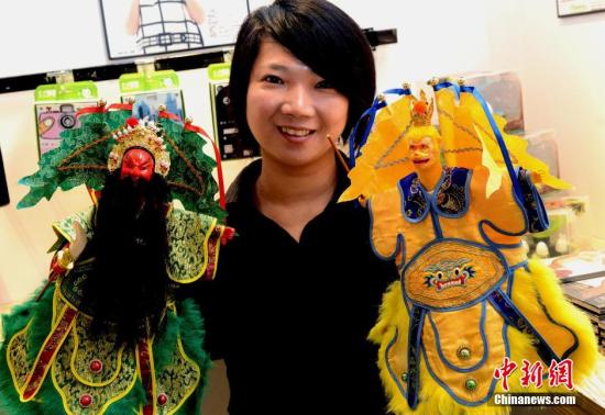 4月13日,中新社記者探訪位于福州馬尾馬限山的“左營佐贏”海峽兩岸(船政)文化創意產業園。“左營佐贏”園區起自船政文化博物館,依馬限山而建,占地約13畝、建筑面積約4200平方米,是一條具有船政特定歷史時期(1866年~1920年)風格的街區。民宅、教堂、名人故居、亭、臺、樓閣和當時在馬尾出現的英、法建筑錯落山道。自貿區的虹吸效應正在展現,令該園區一開張就“引鳳”14家臺企,入住率高達九成。圖為該產業園臺灣文創美學館負責人展示布袋木偶。 (中新社記者 劉可耕 攝)