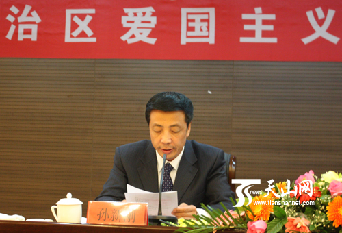 會議由自治區黨委宣傳部副部長孫新剛主持,自治區黨委宣傳部副部長馬木提·托依木利在會上總結了我區近年來愛國主義教育基地建設工作情況。