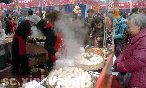 1月2日,在成都市萬達廣場,臺灣小吃攤位生意紅火。 新華社記者 江宏景 攝 1月1日,2009成都臺灣風情周在成都萬達廣場拉開帷幕,130個小吃攤位、30多種臺灣小吃現做現賣,還有臺灣民間藝人的風情表演,現場游人絡繹不絕。 1月2日,幾位成都市民在采購年貨。隨著春節的臨近,許多市民利用元旦假期開始選購年貨,為過農歷新年做準備。 新華社記者 江宏景 攝