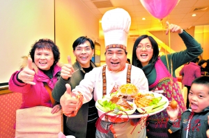 年夜飯大廚黃德忠與廣州游客開心合影。本報特派臺灣記者黃澄鋒攝