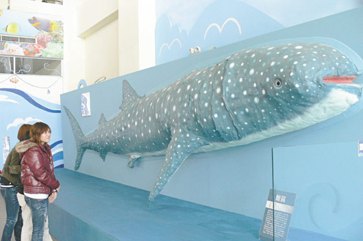 “與鯊共舞”展最吸引人的是入館即見的真皮豆腐鯊標本,“這是真的嗎?”游客一入館區,立即被長7米的豆腐鯊標本吸引目光。
