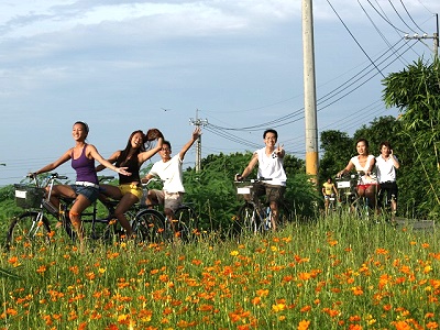 和三五好友一同騎車賞花是春季出游的一大樂趣。(圖/金山原宿提供) 謝燕豪
