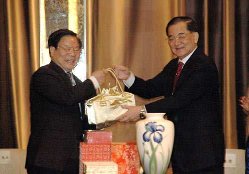 6日晚間,連戰宴請兩岸文化界代表。餐會前,連戰數次引用其祖父連雅堂所著《臺灣通史》并強調荷蘭、日本二次殖民對臺灣文化產生的影響。隨后,連戰致贈蔡武手抄版《臺灣通史》復印本及《連雅堂全集》等禮品。