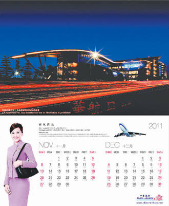華航月歷照樣紅不讓,月、桌歷雖改以桃園新家─華航園區(qū)四大建筑當(dāng)主角,但仍請空服部“六大金釵”,分別扮演雙月歷女郎吸睛。