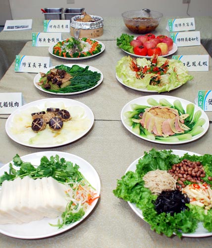 臺灣成大醫院斗六分院17日推出“兔躍春暖健康年菜”,有四色鳳尾蝦、鮮菇帆船鑲肉、螺肉蒜香雞等10道佳肴,在家烹調方便,適合全家團圓聚餐,一餐吃下來每人份熱量僅 800多大卡,可謂健康又美味。圖片來源:臺灣“中央社”